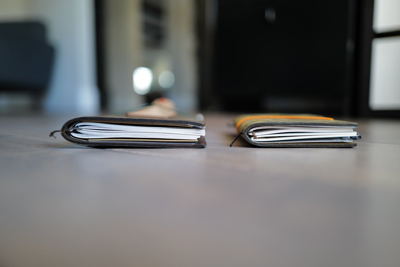 I tend to keep one standard paper notebook in the Passport, and one lightweight when traveling to maximize paper count. For day to day, the passport size has one standard and one “ticket” notebook that Traveler’s does, which can add entertainment for the kids. Or me.