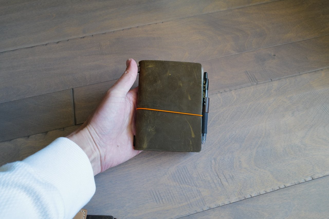 Anyways, I’ve never stuck with a single notebook or type of notebook for long. They wear out fast, or don’t really have the right vibe and are tossed aside rather quickly. But Travelers Company Notebooks were items I kept seeing, kept wondering about, and finally pulled the trigger on one in each size (Regular and Passport). I’ve been using them both for quite some time now, and they are checking all the boxes for me.