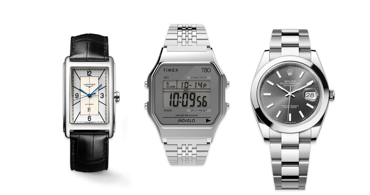 Buy a stainless steel watch with a silver dial, and as few complications (features) as your personality can stand.