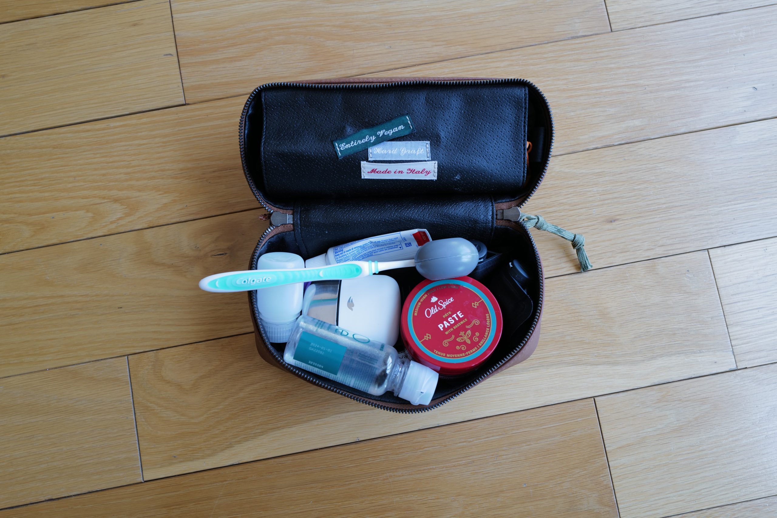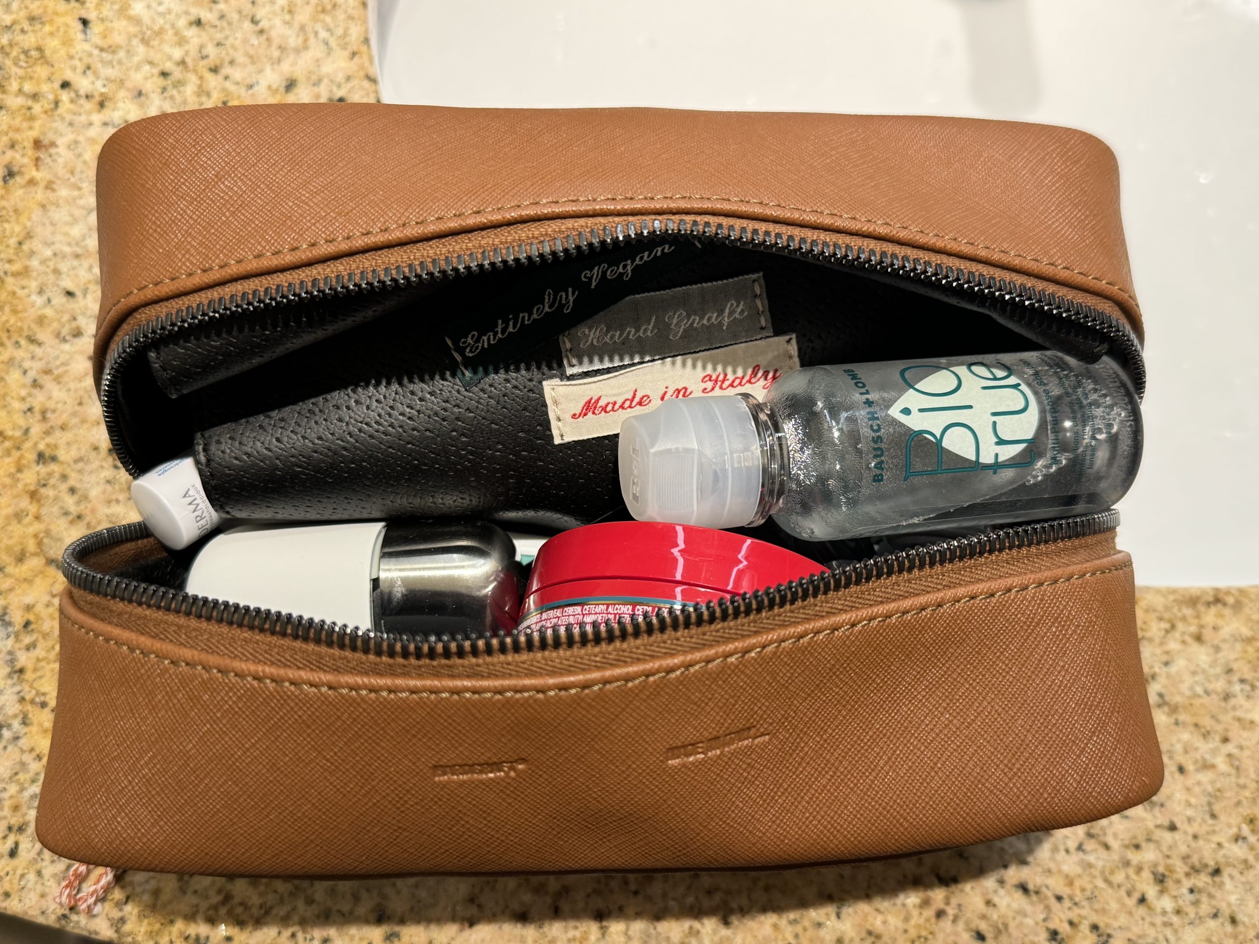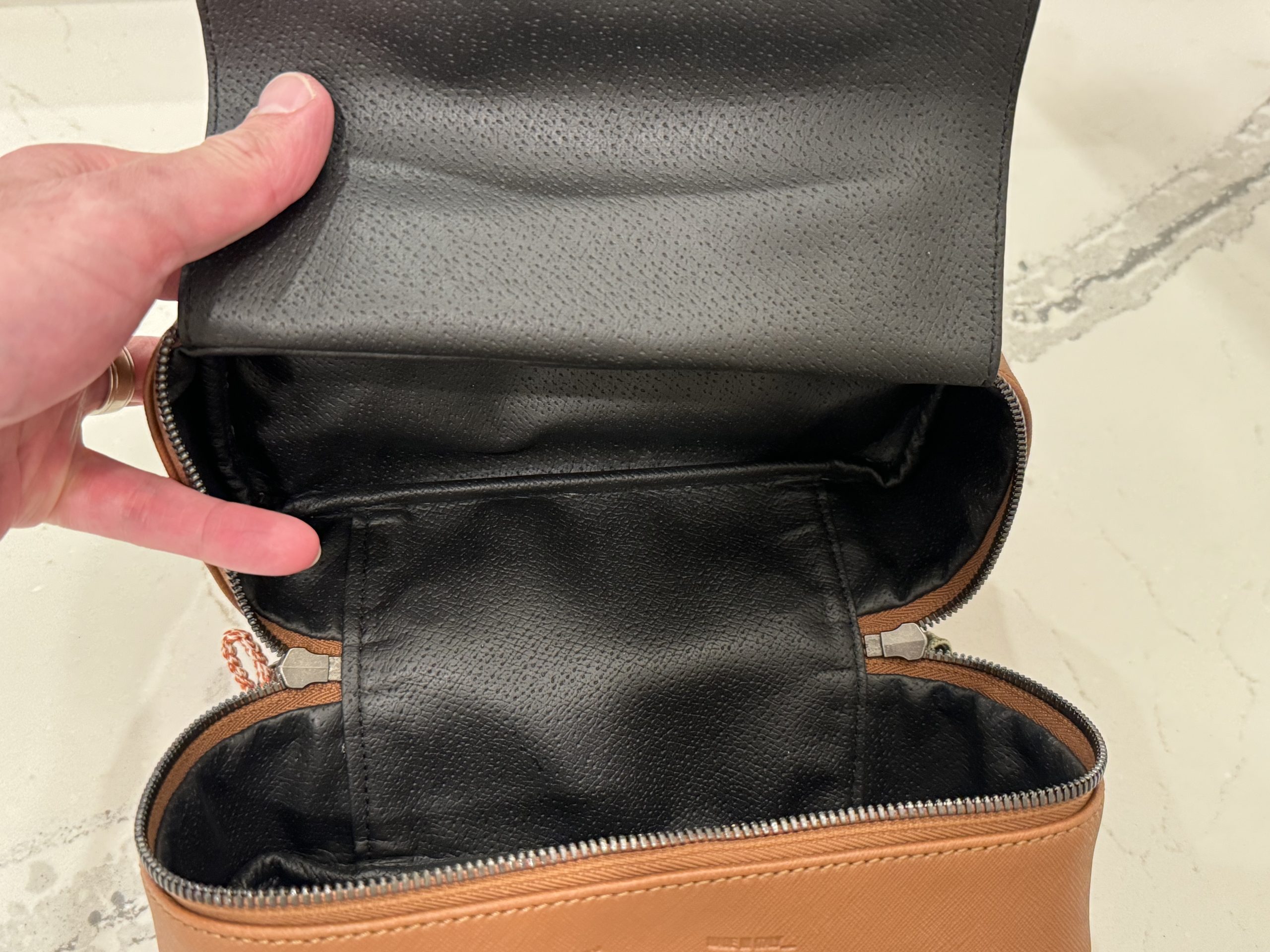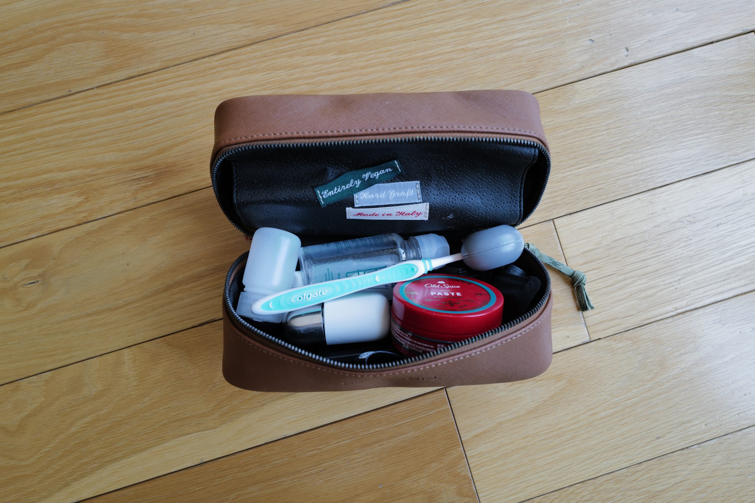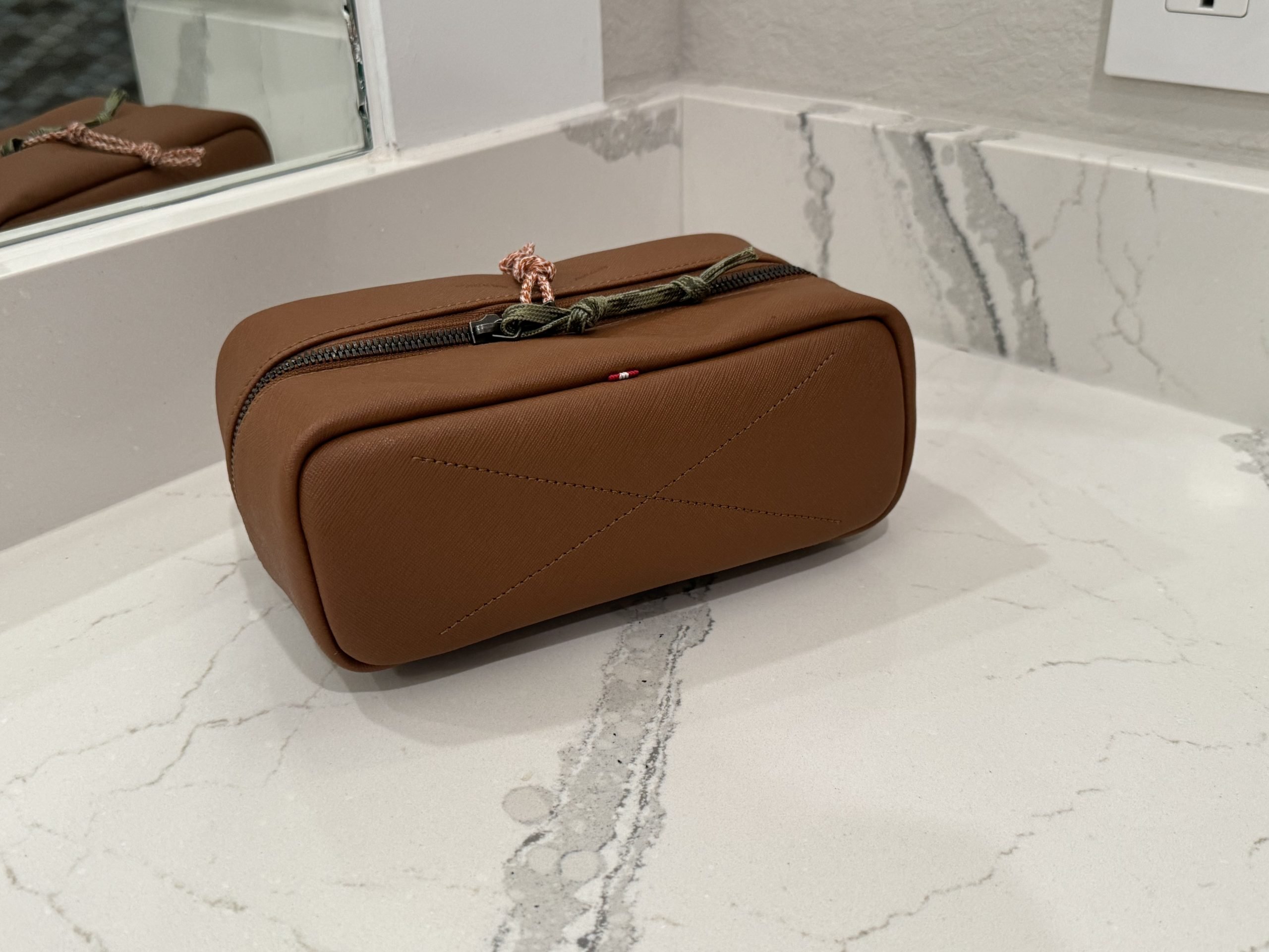 I was about to buy one in classic leather, until I realized that this would spend most of the time around water and soap, and leather doesn’t seem like the right choice of material for that type of use. So instead I opted for the Vegan leather alternative, and there’s no going back — this is a fantastic DOPP Kit.