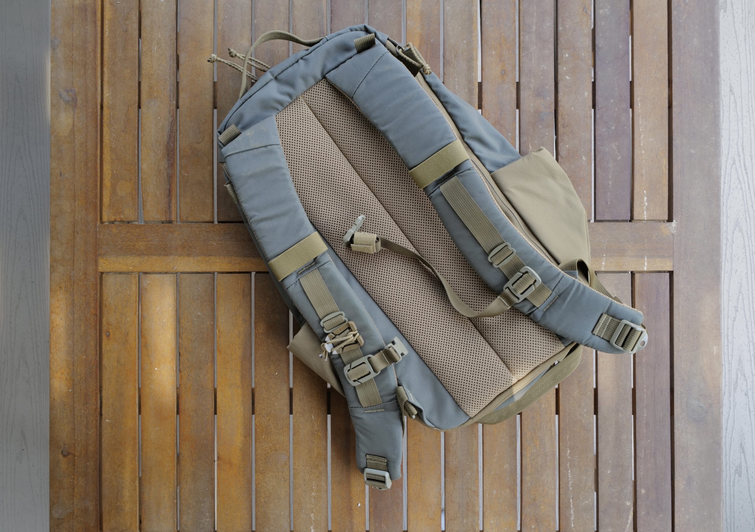 The first thing I noticed with this bag is how exceptionally comfortable it is to wear. The straps and proportions of this bag really nail the comfort and fit. Dropping a 20lbs steel weight plate into the bag, and stuffing it full of pool towels to keep it in place — I rucked this 6 miles without the framesheet in it, and had no issues. It wasn’t the most comfortable bag I have rucked with, but it’s in the top three.