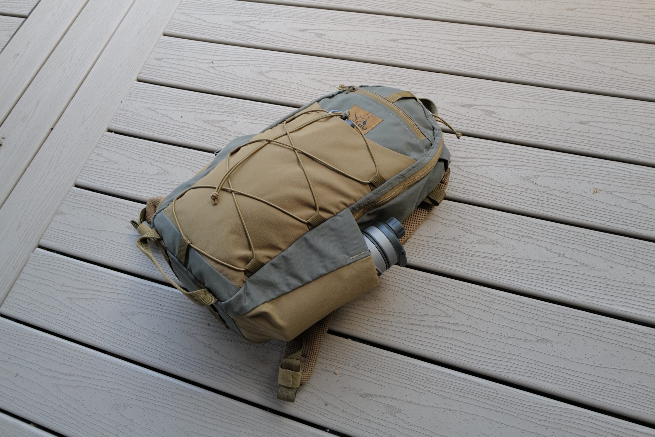 - Side Bottle Pockets: these both easily and securely hold a classic Nalgene, no issues with them coming out. They lay somewhat flat when not in use as well. With narrower bottles the design doesn’t hold those as tightly, so a 20oz bottle might slip out if the bag is set down flat on the ground.