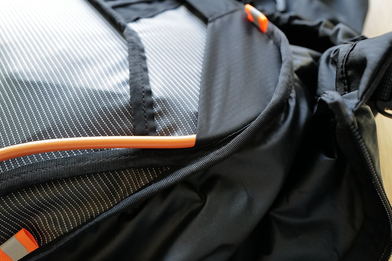 The bag itself is simple, whereas the harness is magical and builds off the best harnesses in backpacks. The pack material is effectively a very light weight Robic Ripstop nylon, which Mystery Ranch lists as ‘Technical Ultra-PE birdseye’ ‘Recycled 100D Robic Ripstop’. For me it’s a very thin, but durable feeling and well performing nylon. Make no mistake, it is thin.