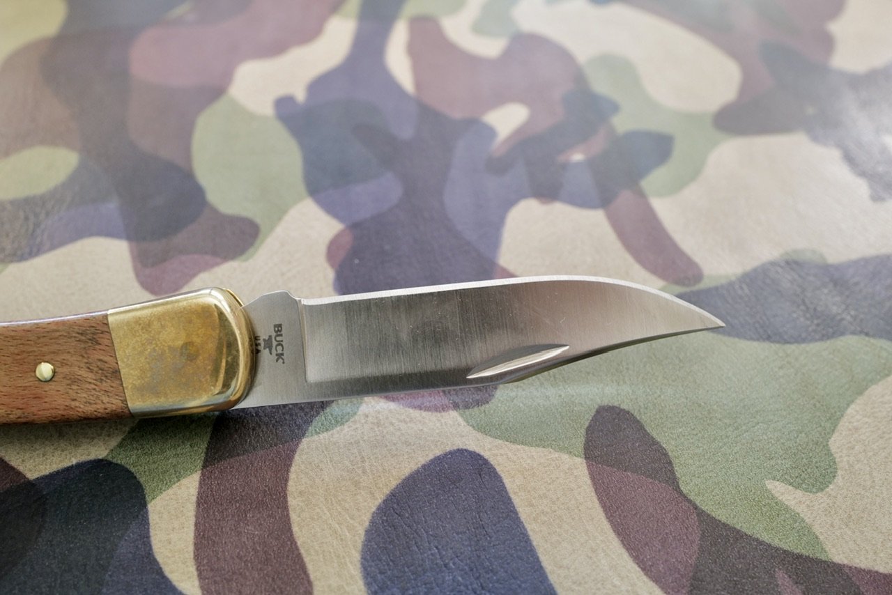 Buck has been making these knives for a long time, and it shows. Everything on this knife mates up to each other perfectly. The blade opens smoothly, and locks up with a strong snap. The grind is good, and even. The blade is a clip point with a machined finish. There’s only a nail nick to open it, and a lock back. Simple, tried and true, nothing fancy.