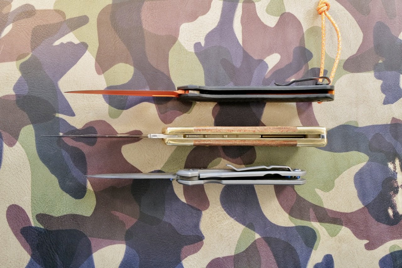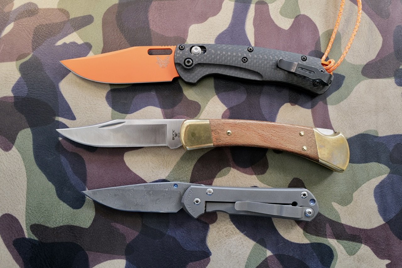 Top to bottom: Benchmade Tagged Out, Buck 110, Chris Reeve Small Sebenza 31.