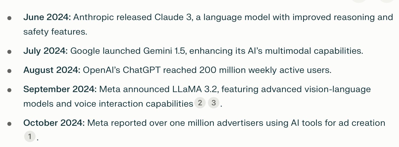 If you don’t believe me, look at this LLM release timeline. That’s just the core LLM model releases. Just look at June 2024 to now: