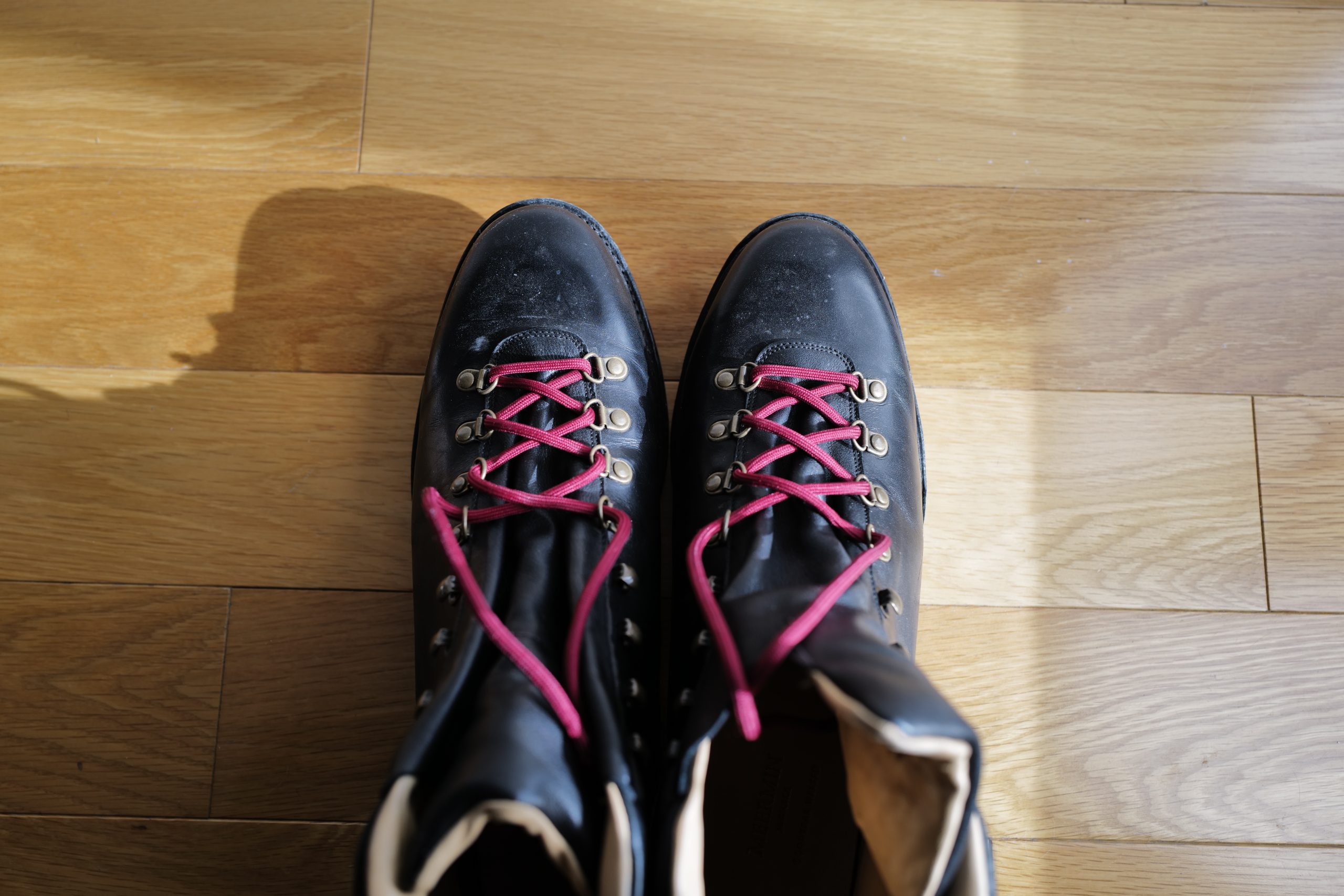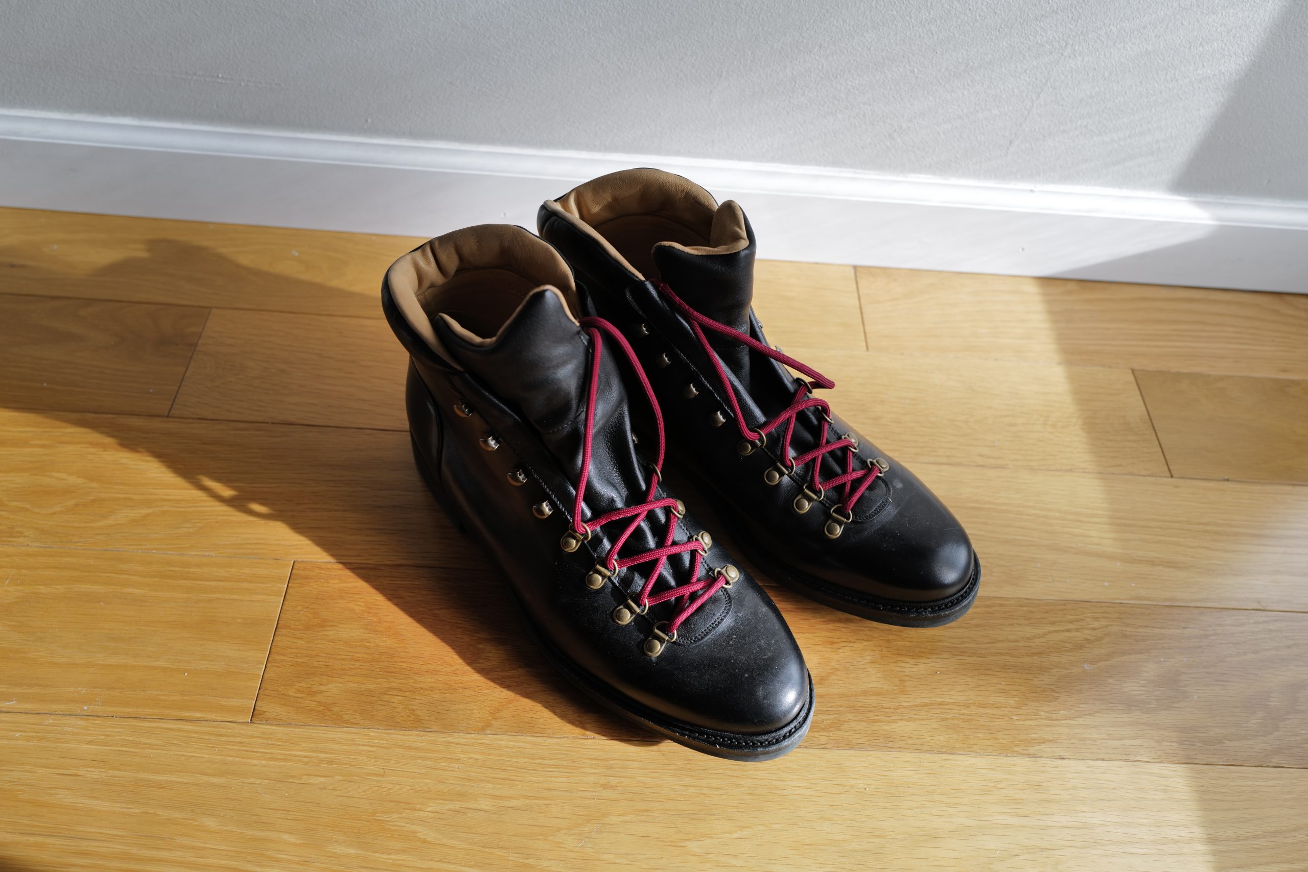The overall fit and construction of these look perfect to my eye. The black leather is much shinier than expected when you first unbox them, and luxuriously soft — which is not what you might expect from a boot of this style. The sole is a commando lug sole, and is rugged but soft in construction. There’s a horsehide lining which is immediately comfortable and hugs your foot.