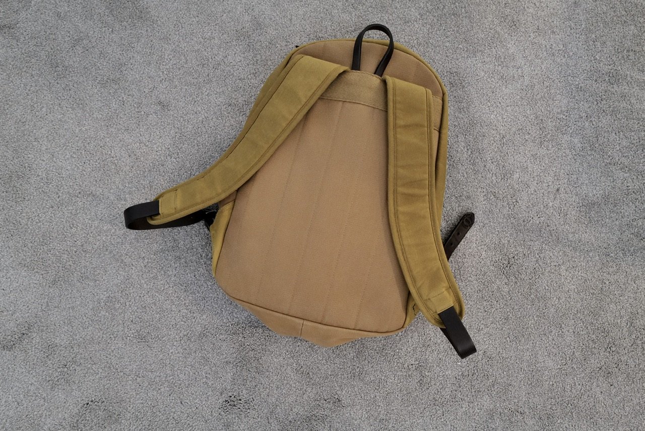 - The bag is nice and floppy. Typically, this would be a downside, but when you want something that doesn’t give away its true capacity, you want floppy. The Tin Cloth is substantial enough that when mixed with the Rugged Twill, the floppiness of the bag doesn’t turn into sloppy like a packable backpack might. It’s a natural vibe for the bag.