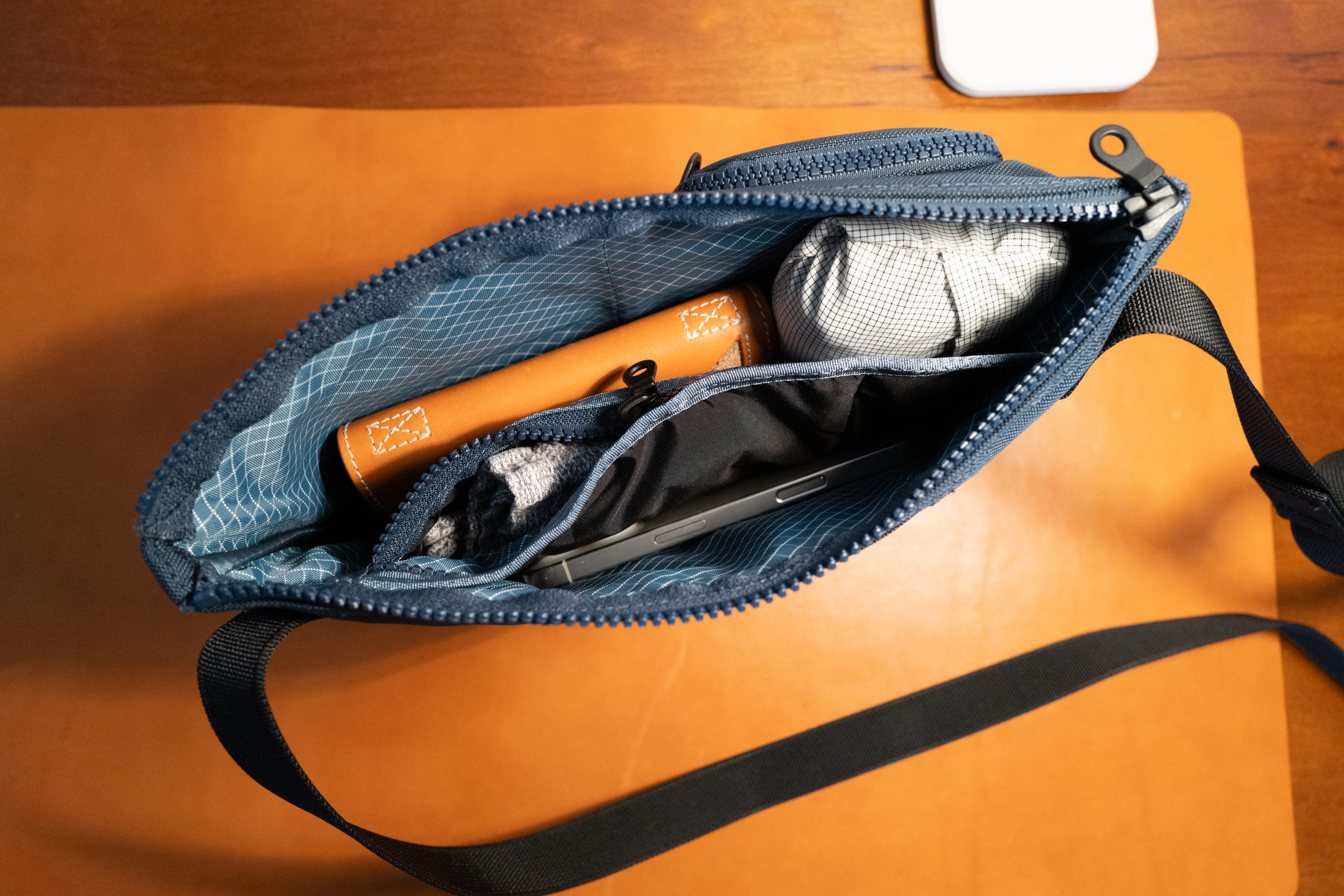 But, it’s not the size of this bag which drives the utility. Instead it’s the functional design, and lack of fuss the bag demands. What I mean by this is exemplified by the strap itself: you can adjust the length and do nothing else. It’s articulated so that the bag sits nicely when worn across your body, but still allows for easy one-shoulder carry if that’s your thing.