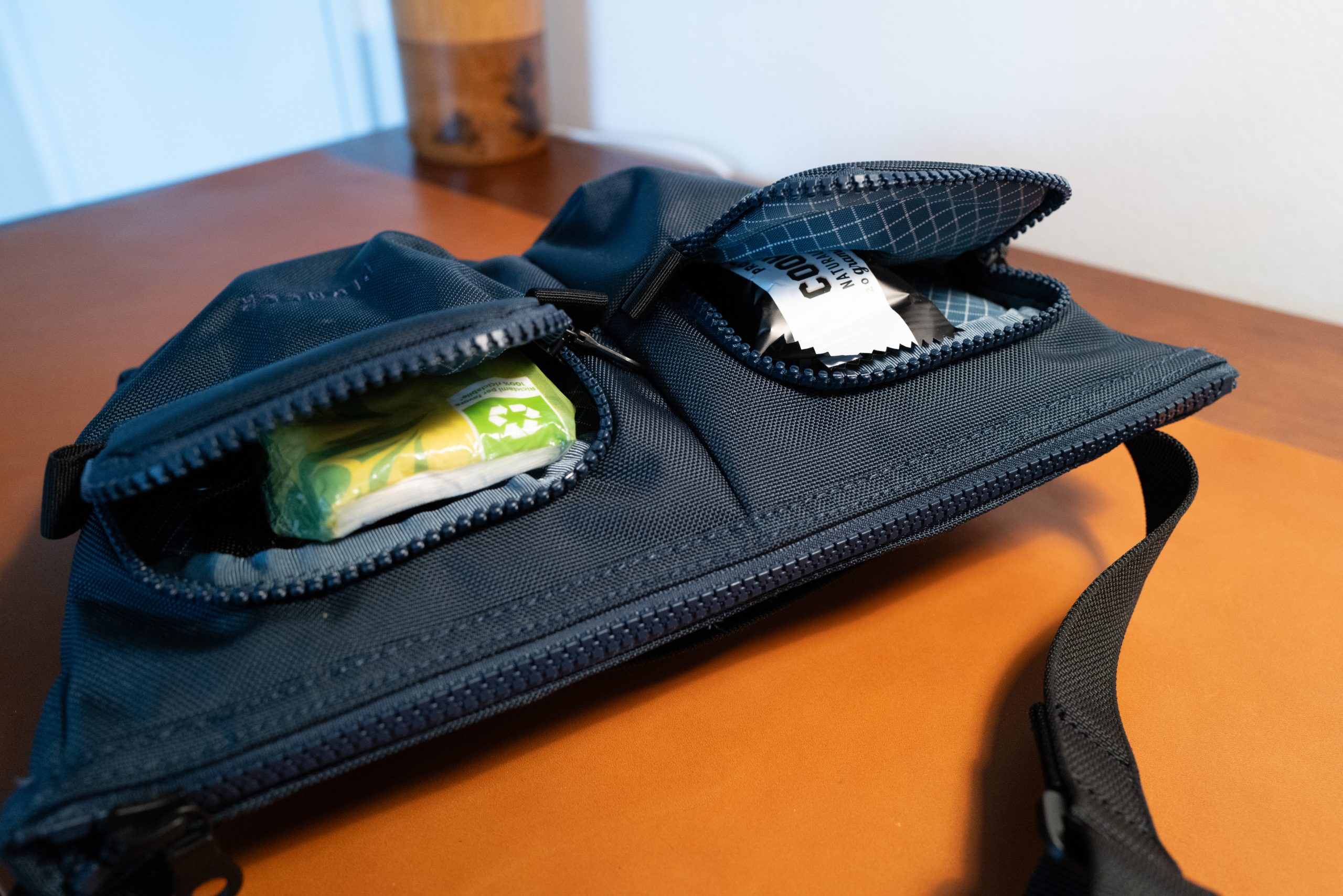 At first I kept thinking: there’s just no reason for this. All of my gear I would normally carry in my shoulder bag was far too much for this sling. It took me a bit to realize what this really is good for: the little things you don’t have room in your pockets for, but which can make your life infinitely easier when and if you need them if you actually have them with you.