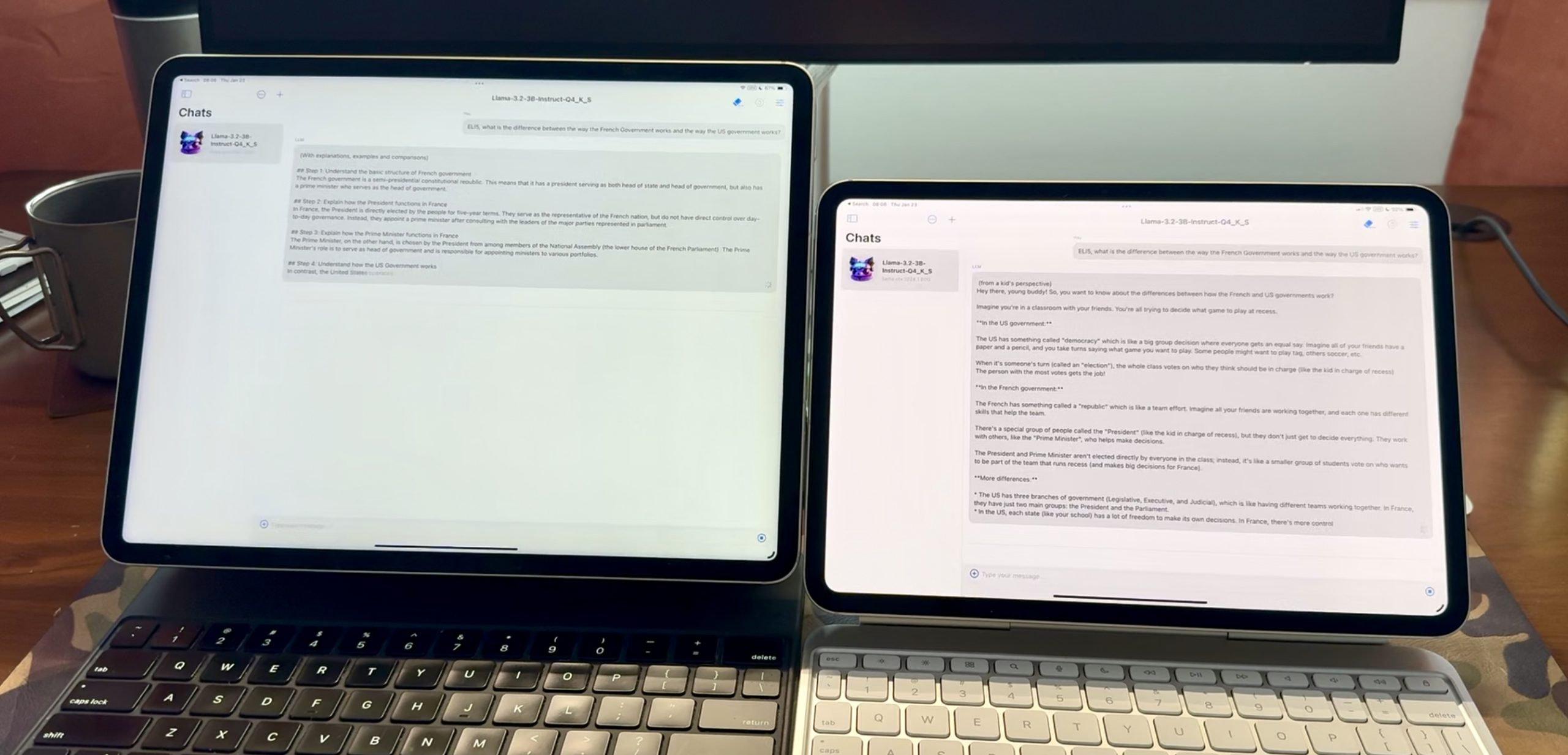 It’s also nearly impossible to know what is a system level improvements, or an actual hardware improvements (meaning OS updates can make these devices feel more performant). The only thing I know for certain here is that this new M4 iPad Pro can run much larger LLM models locally, at much faster speeds than I could before. This difference is extreme. The M4 processor is a beast for that level of CPU work and it shines.