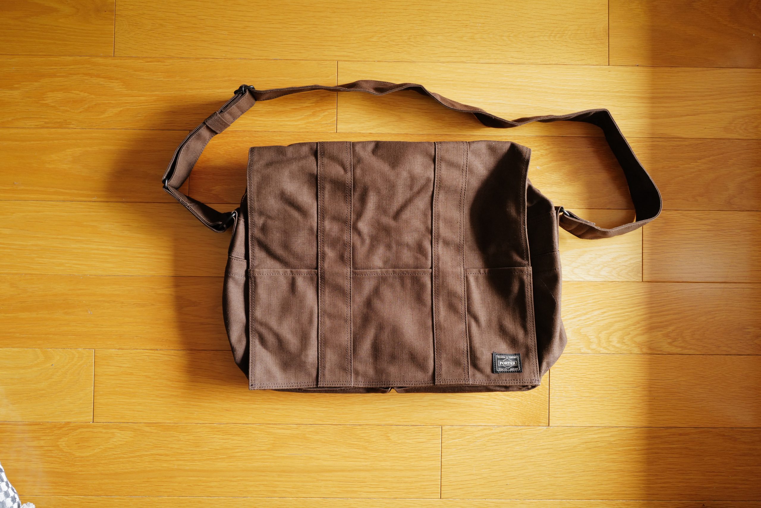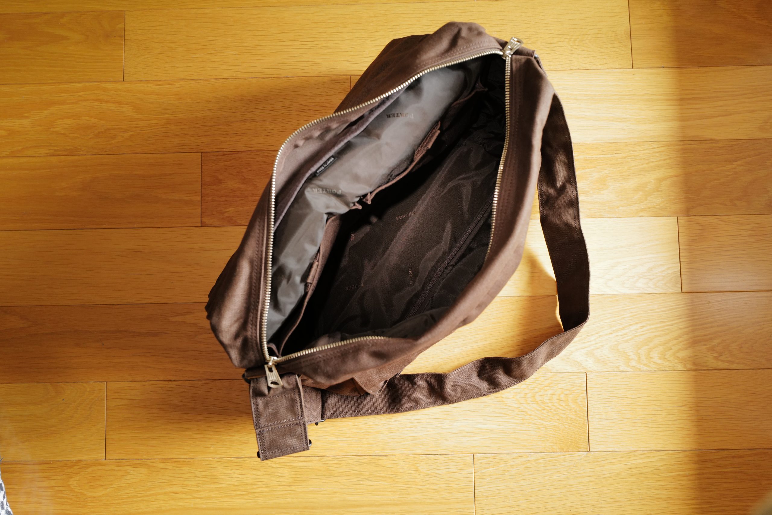 This is Porter’s Smoky line, and specifically the generically named “Shoulder Bag” — this comes in two sizes, this is the larger of the two. It’s also one of the best bags I own, and it’s a lot easier to explain why this one is so very good.