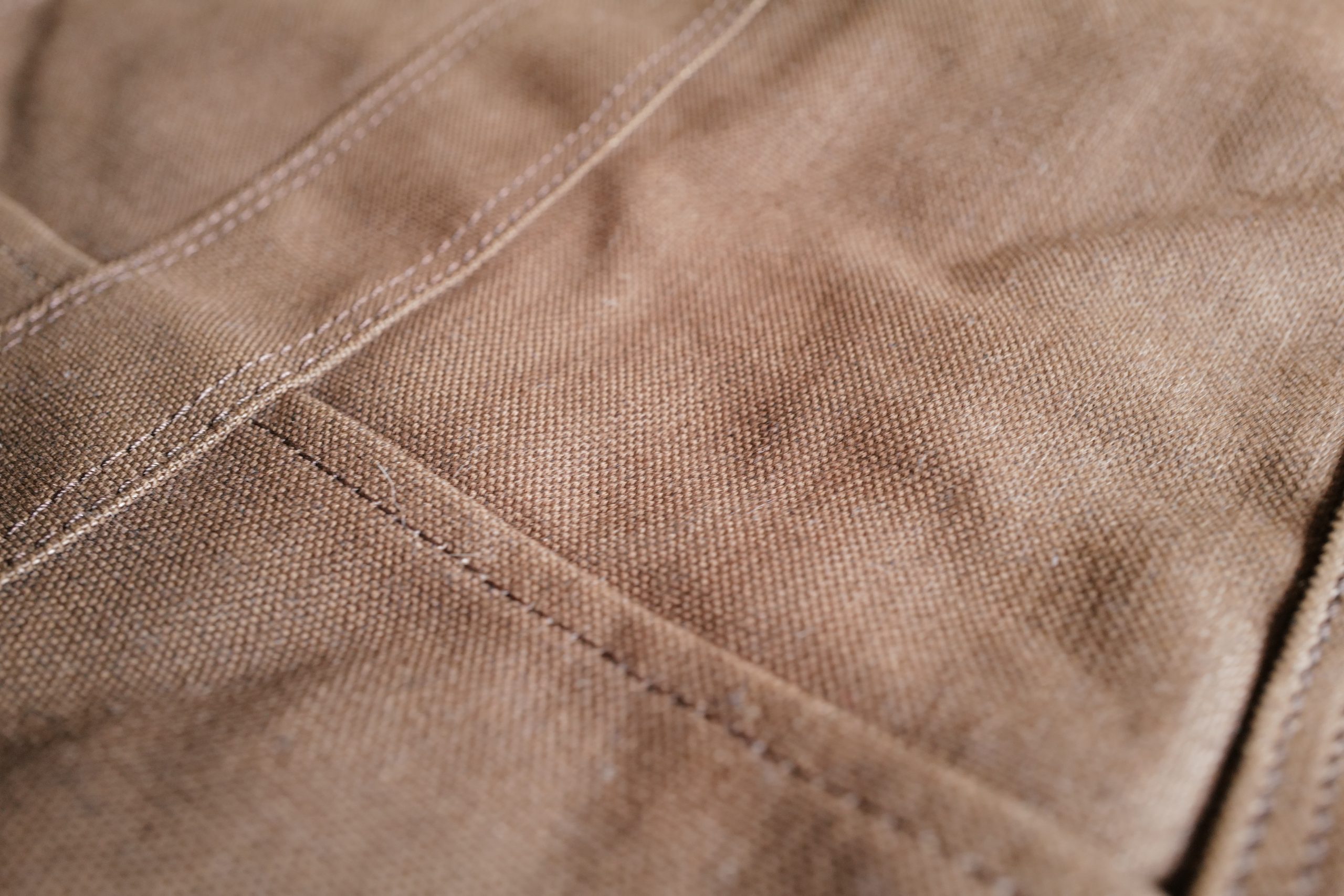 Zimbabwean cotton is used for the warp threads, and uneven yarn with uneven thickness are spun. Strong and supple Cordura 1000 denier is used for weft yarn. It is very difficult to weave uneven yarn, but the techniques and ingenuity of Japanese craftsmen cultivated over many years have made it possible to create a plain weave.