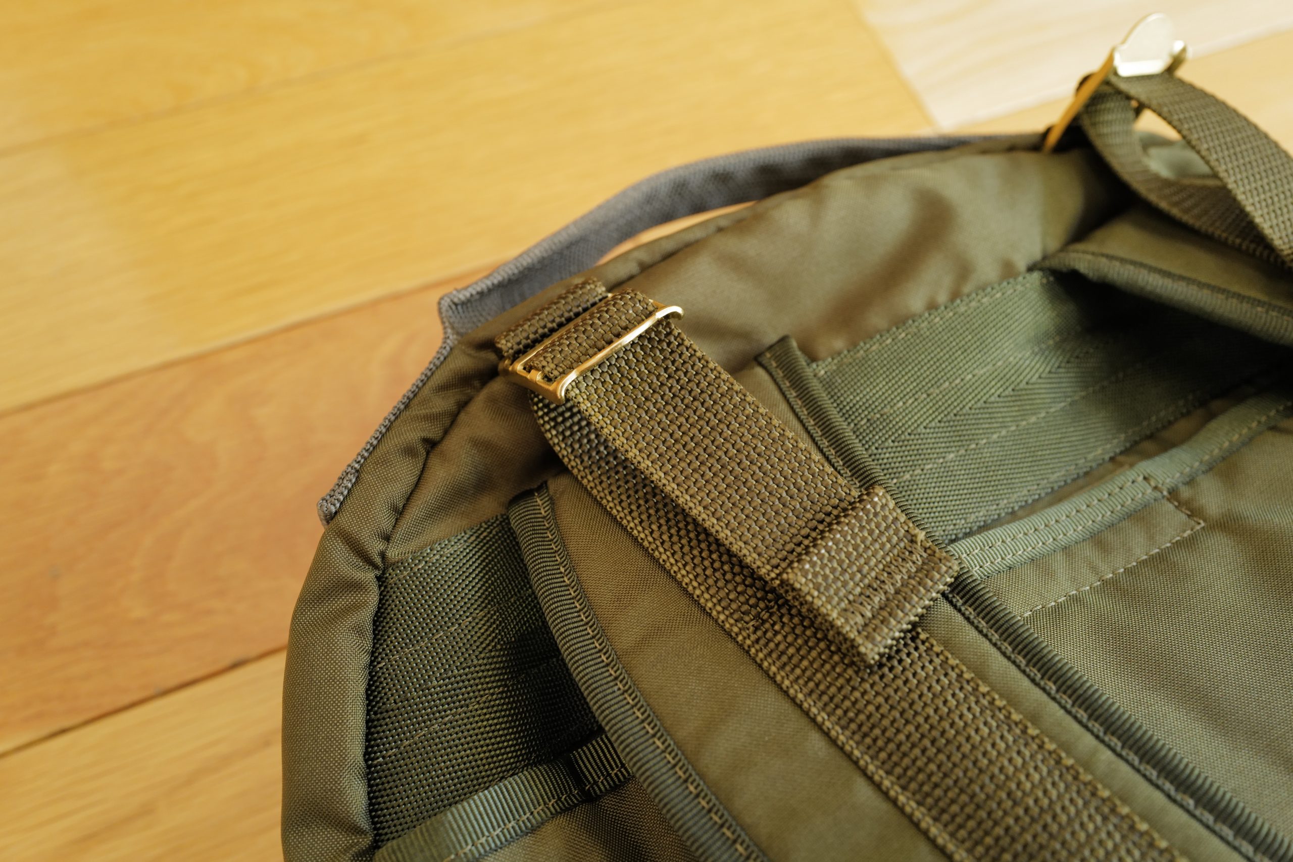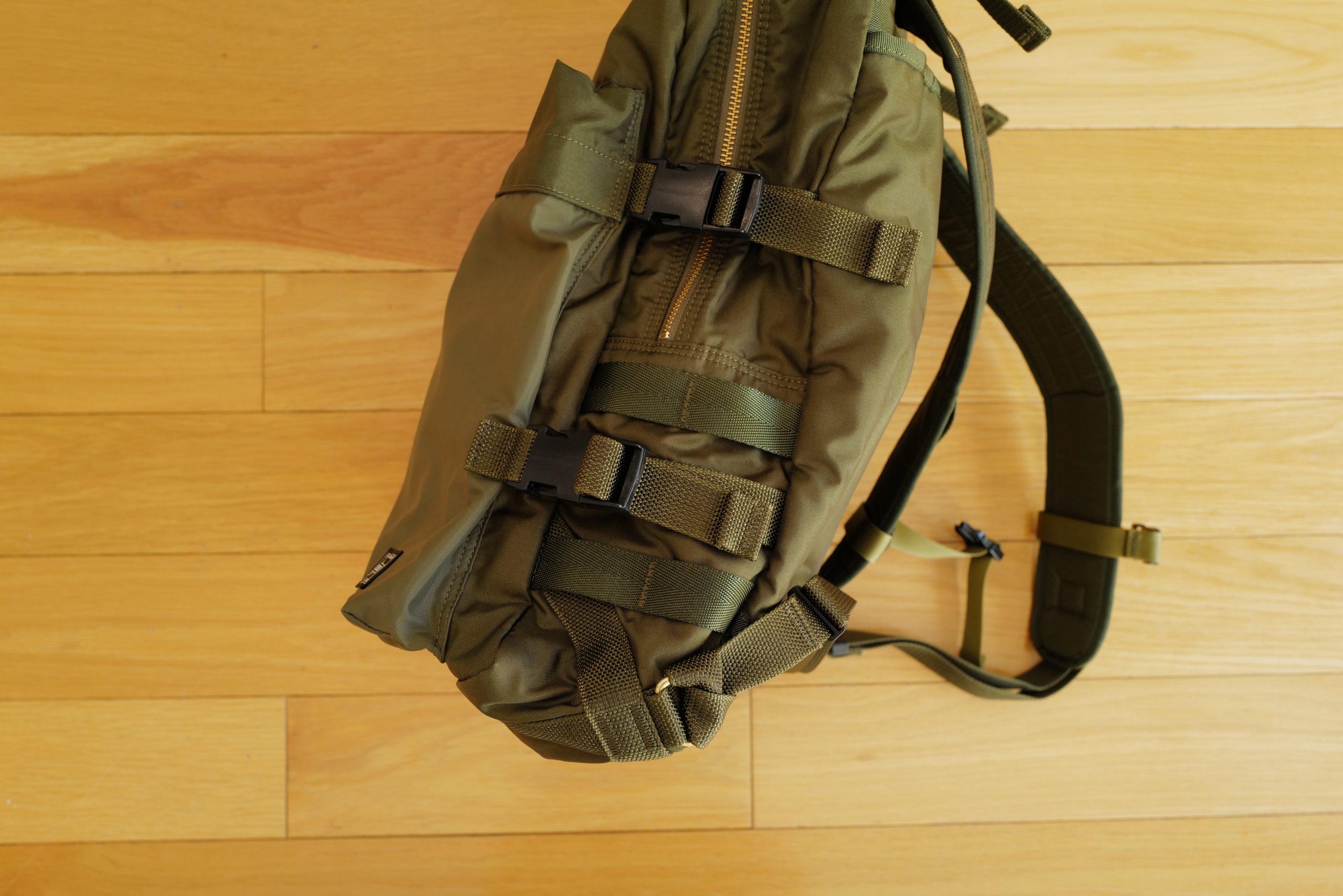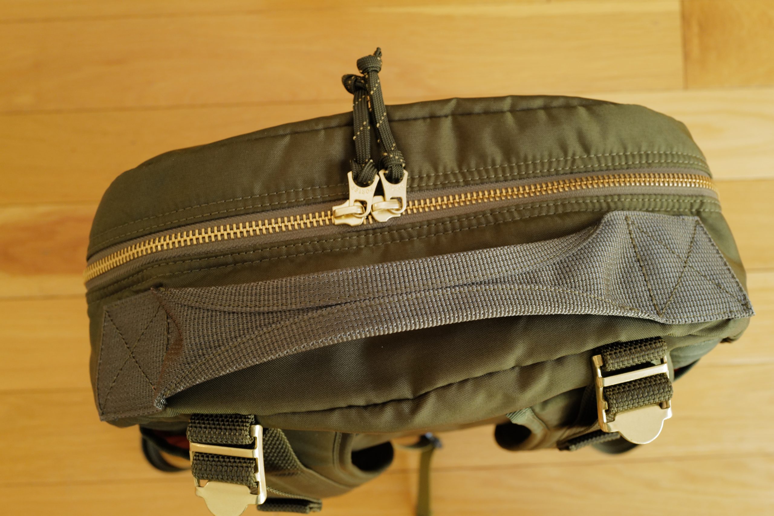 This bag has two sets of compression straps — I love compression straps when they are well done. To be well done, they must actually be able to compress the bag — otherwise they are just extra crap for no reason. Porter has not let me down here. The top strap attaches right at the seam with the front pocket, and can pull the bag all the way tight to the side release buckles. The bottom compression interestingly attaches to the front pocket itself, giving you a bit more length to compress, as well as the ability to pull the bottom of the front pocket taught. I’ve yet to have the bag full enough to worry about that, but it’s an interesting attachment point.