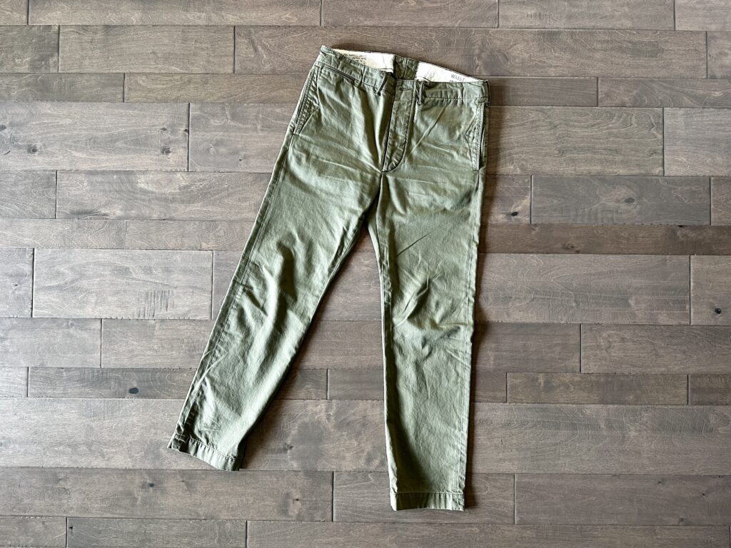 It’s not even close. I resisted these pants for so long, and that’s my only regret about them — that I didn’t buy them sooner. They are thick, but not too thick. They have classic lines, which should last through the next couple dozen fast fashion crazes and then some — they are cut in a way which works no matter the trends. They start to break down nicely, showing you some fray at the pockets and waist band, but not too much fray. Some lightening of color over time is welcomed and a nice reminder that synthetic pants lack character.